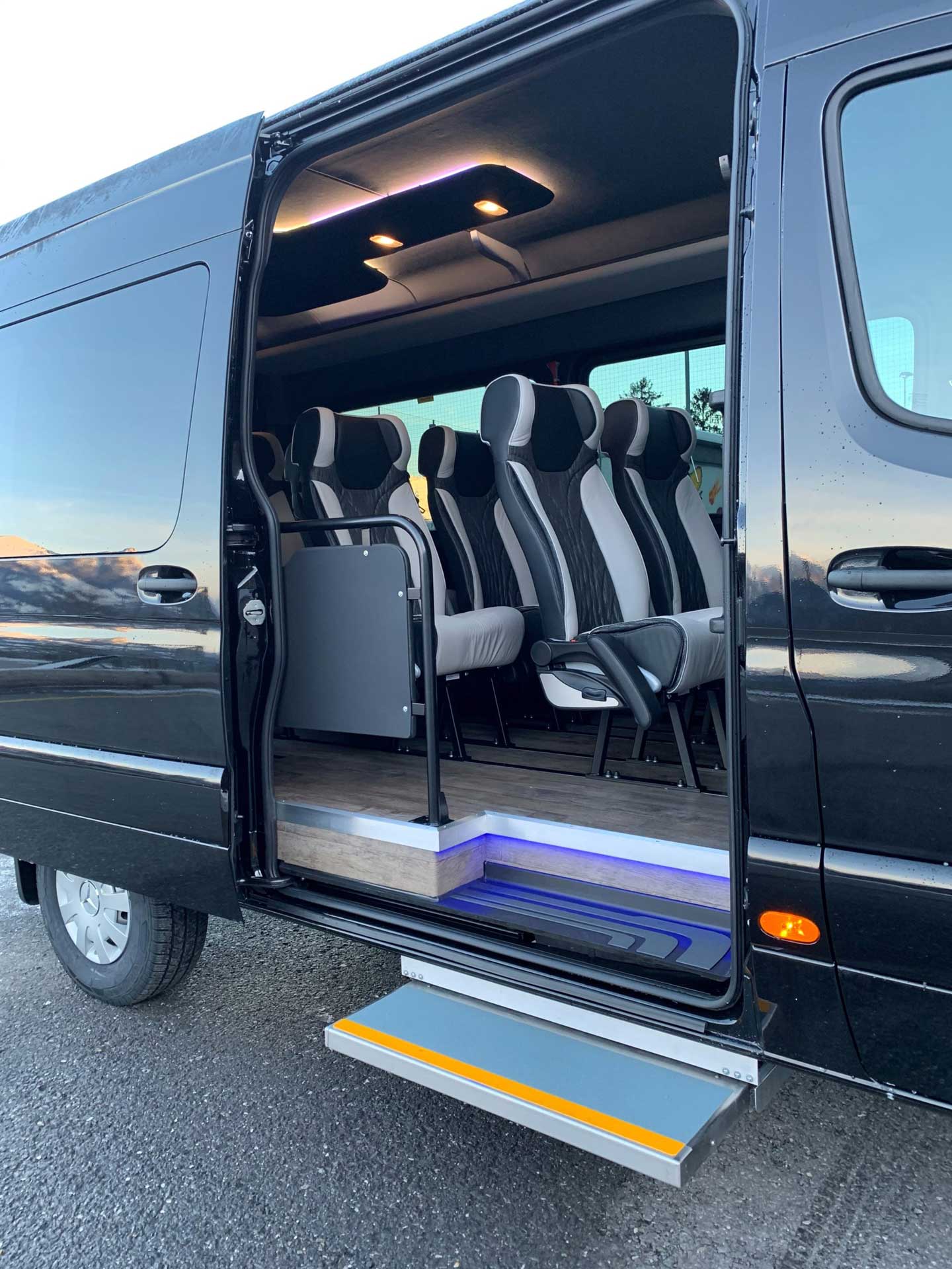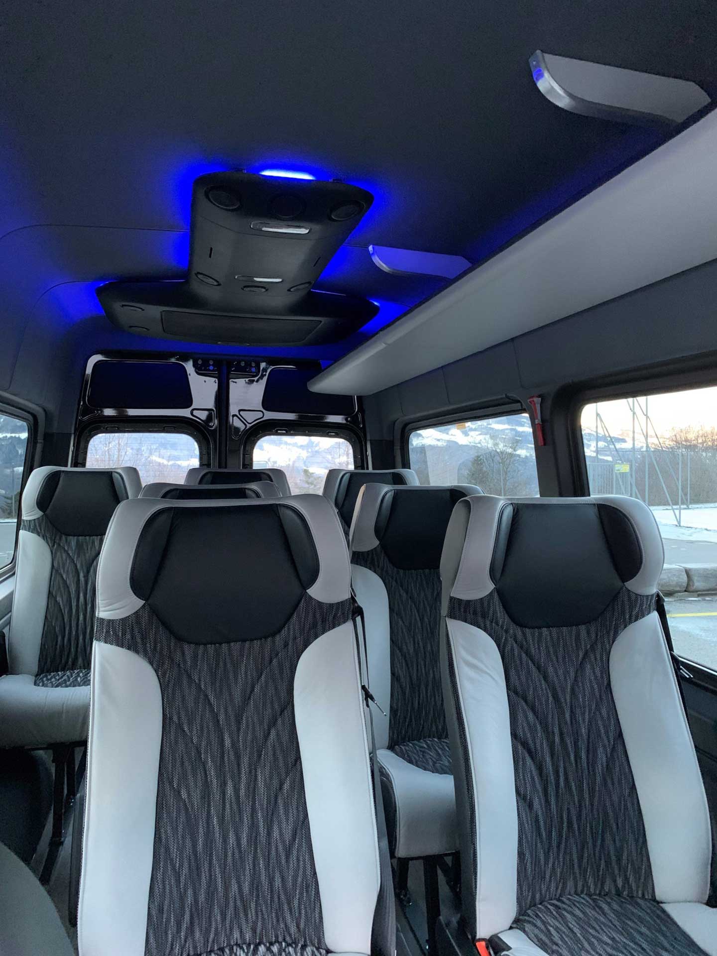 Ein topmoderner Luxus-Midibus mit 9 Sitzplätzen (8 Passagiere + 1 Fahrer) Sitzplätzen ist für Sie unterwegs und stellt unter anderem Folgendes für eine entspannte Fahrt bereit.