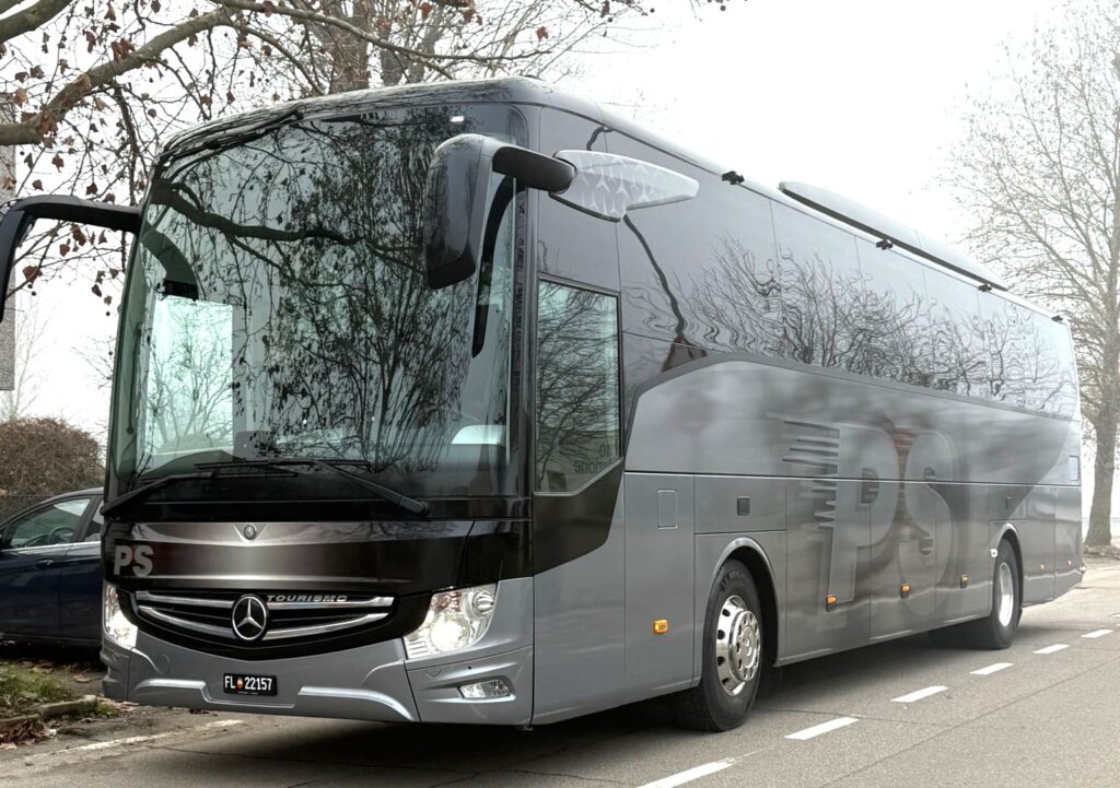 Ein topmoderner Reisecar mit 47 Sitzplätzen (44 Passagiere + 2 Reiseleiter + 1 Fahrer) ist für Sie unterwegs und stellt unter anderem Folgendes für eine entspannte Fahrt bereit.