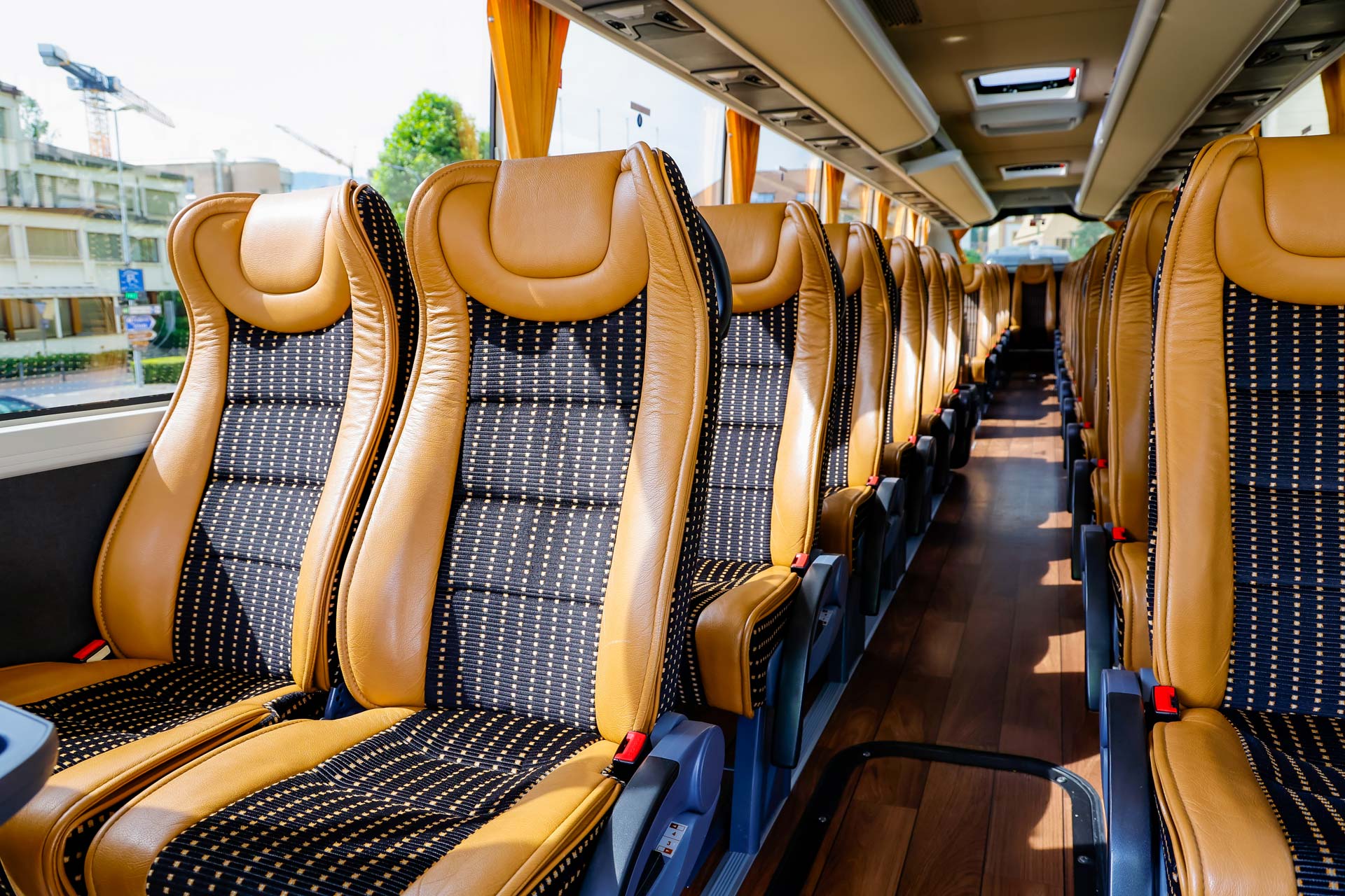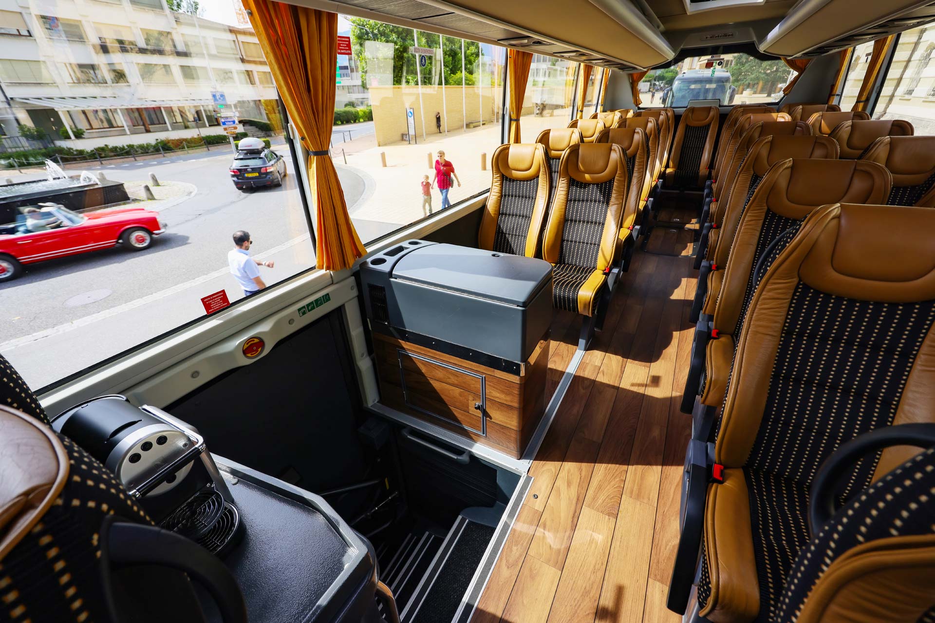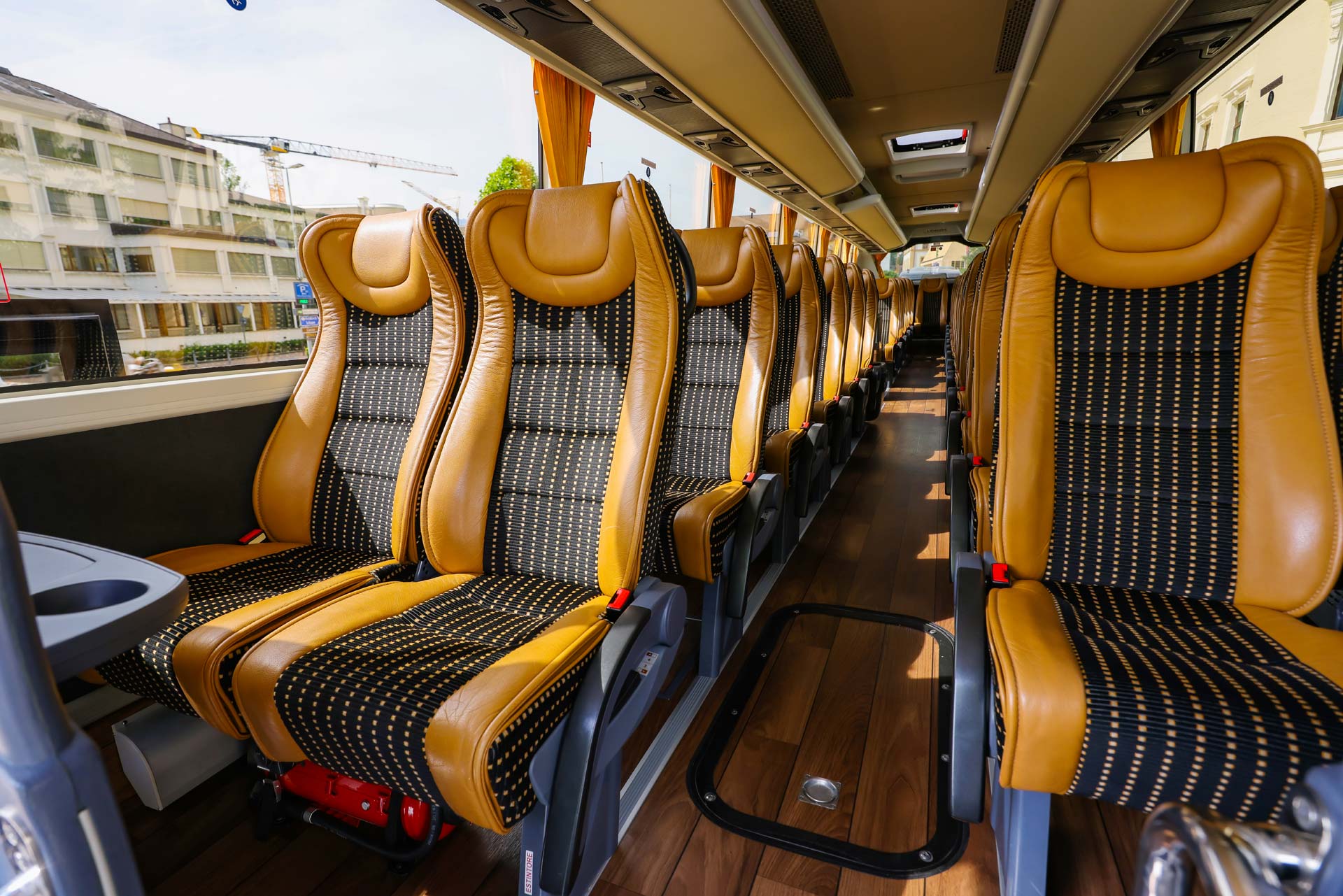 Ein topmoderner Reisecar mit 51 Sitzplätzen (49 Passagiere + 1 Reiseleiter + 1 Fahrer) ist für Sie unterwegs und stellt unter anderem Folgendes für eine entspannte Fahrt bereit.