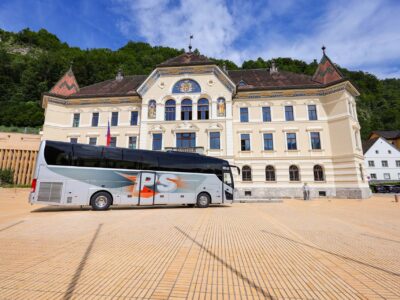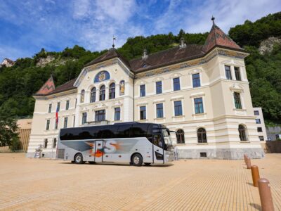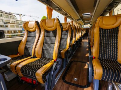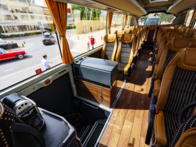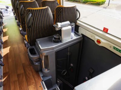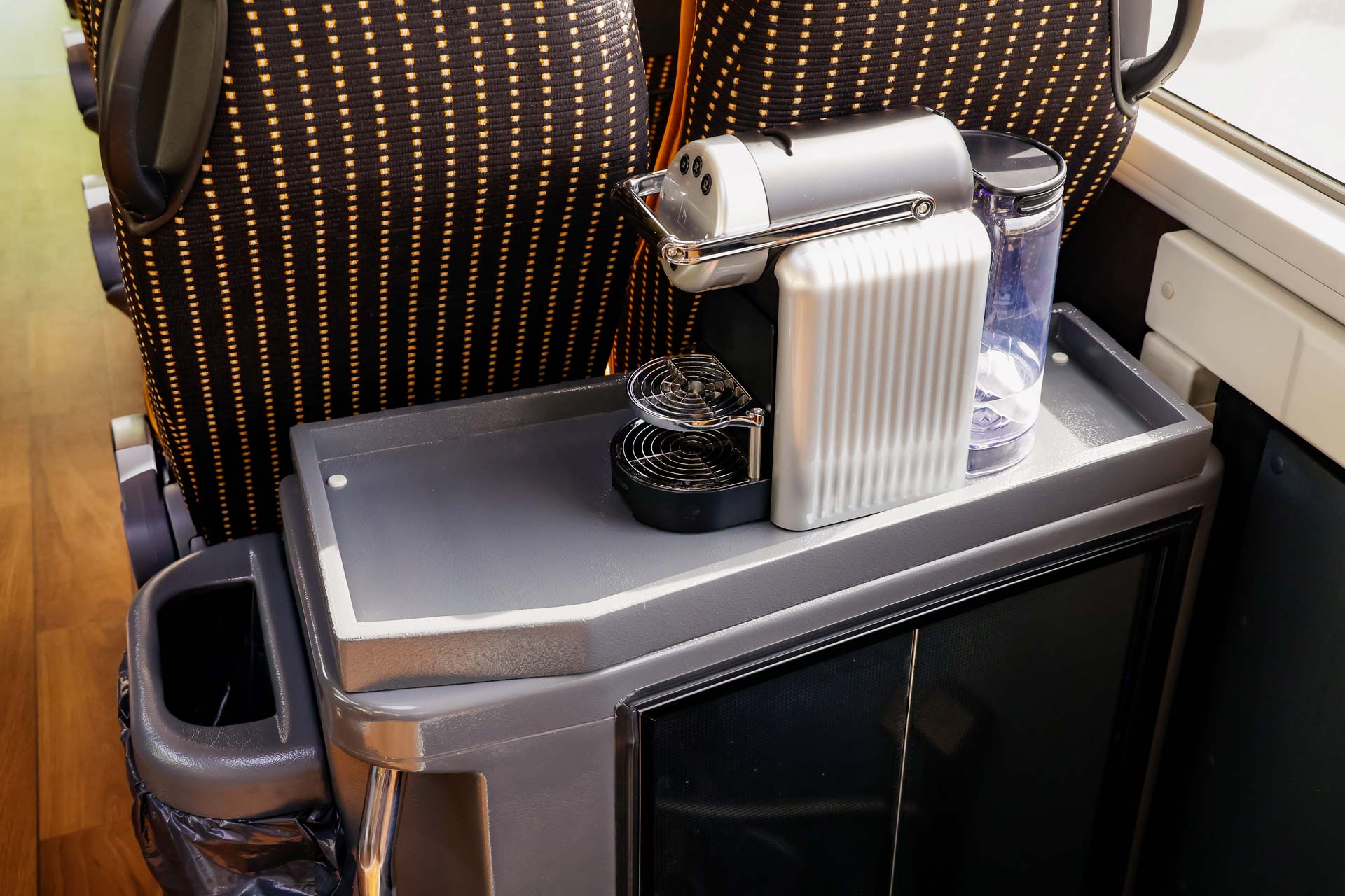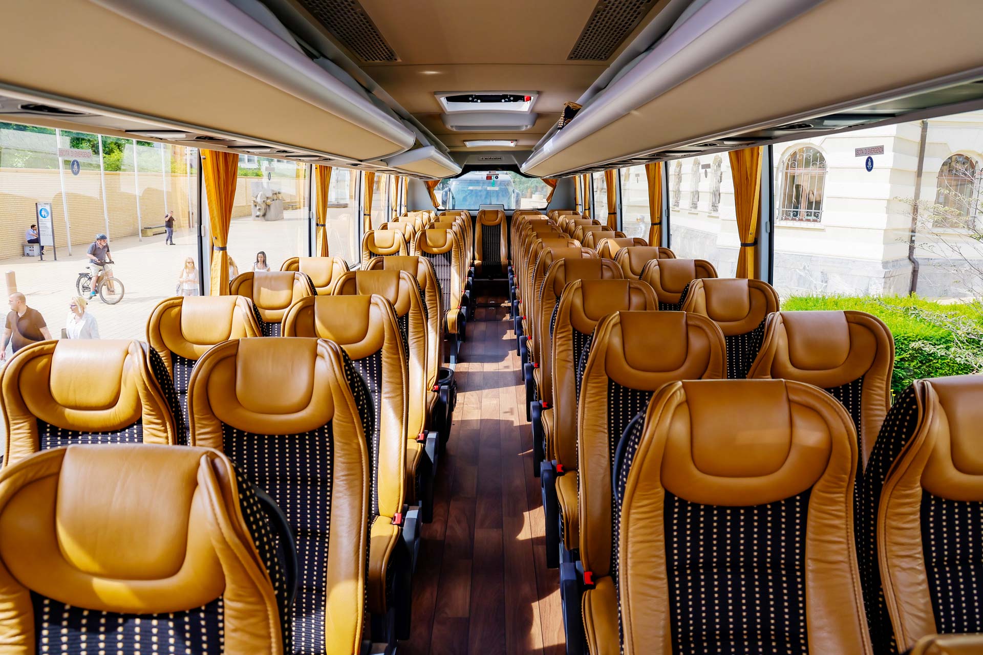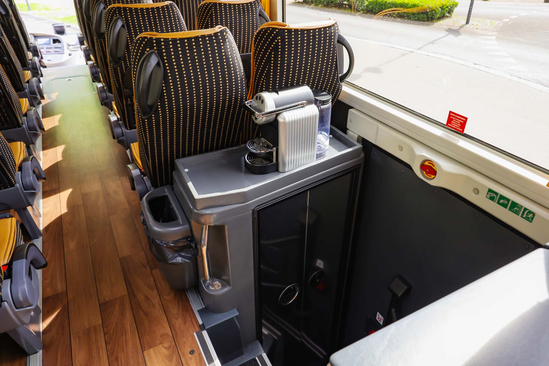 Ein topmoderner Reisecar mit 51 Sitzplätzen (49 Passagiere + 1 Reiseleiter + 1 Fahrer) ist für Sie unterwegs und stellt unter anderem Folgendes für eine entspannte Fahrt bereit.