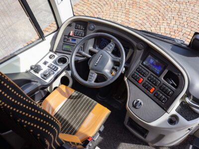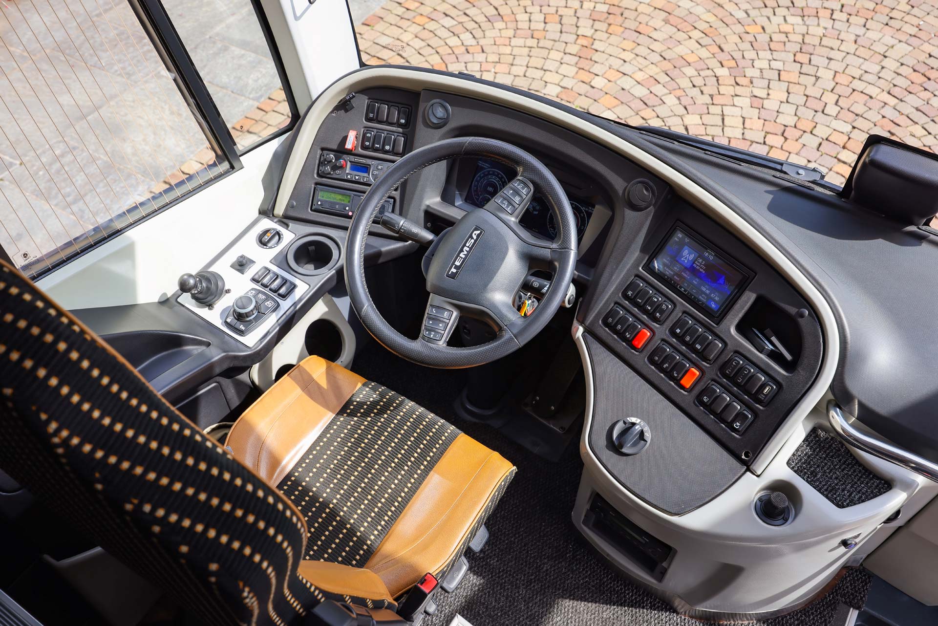 Klimaanlage, WC, Parkettboden, Radio/CD/DVD-Gerät mit Aux-In/USB/MP3-Funktion, Sitze aus Teilleder mit Rücken- und Seitenverstellmöglichkeiten, Armlehnen, Fussraster und herausklappbaren Tischen gehören ebenfalls zum Portfolio.